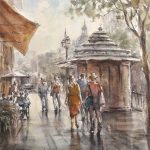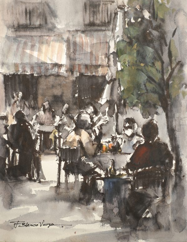 Acuarela » Terraza en madrid «. tamaño 35 x 25 . autor «Faustino Blanco Vega»